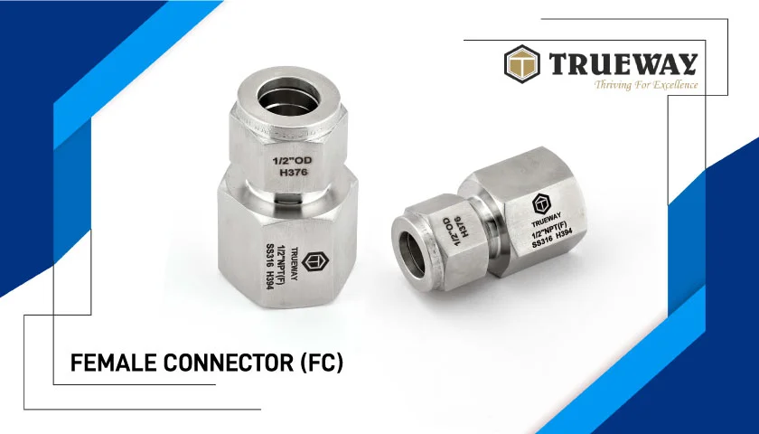Female Connector is a Straight Connector with Female Pipe Threads on one end & Ferrule type joint on other end. It comprises of four precision engineered components as Body, Front Ferrule, Back Ferrule & Nut. It is used for achieving High Pressure Leakproof Straight Joint of Metal Tubing by swaging of Ferrules on OD of Tubing at one End to connect Second End with Male Threaded Open Port.
