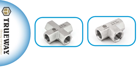 1/8” to 2” NPT (Taper) Threads (BSPP/ BSPT/ ISO/ Metric or any other types upon request) Reducing tees in all combinations available |