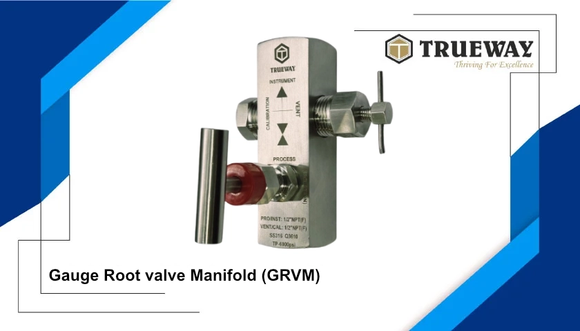 TRUEWAY Gauge Root Valves Manifolds which, it is used for high pressure with relatively low flow rates mostly used for pressure gauges with one valve to Start, Stop & regulate inlet/ outlet port, a bleed valve to control outlet/ drain ports & an additional port for calibration of the Instrument in position.